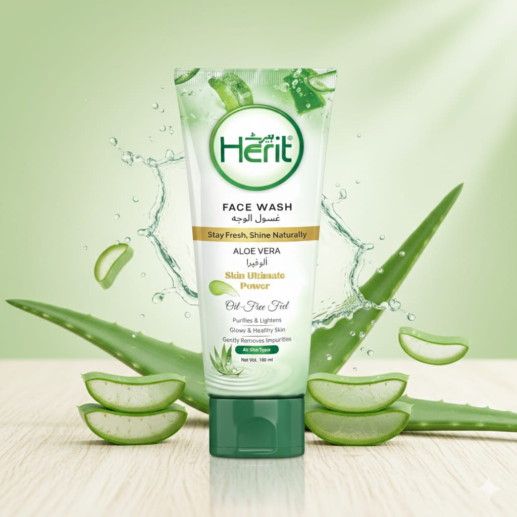 🌿 Stay Fresh, Shine Naturally Refresh your skin with Herit Face Wash, enriched with the soothing power of aloe vera. This oil-free formula is designed to gently cleanse, purify, and brighten your complexion while maintaining a healthy glow.